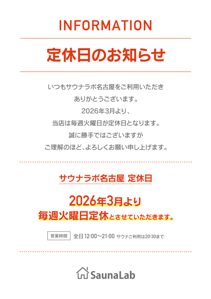 いつもサウナラボ名古屋をご利用いただきありがとうございます。